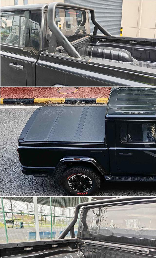 皮卡版的车头部分整体造型轮廓和212 T01基本一致,保留了复古硬朗的设计风格,细节上进行了重新设计,其中中网使用了全新的网格状格栅,中间带有较大的212数字车标。另外强也使用了新的造型。车身侧面部分,前后轮眉上部增加了位置灯装饰,标配了上车踏板。