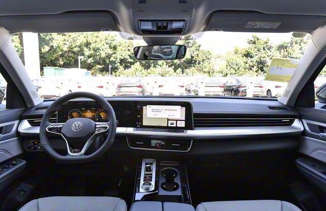 进入车内,2026 款揽巡延续大众经典的 T 型中控台布局,软质搪塑材质覆盖中控面板,搭配金属饰条与钢琴烤漆点缀,营造沉稳精致的内饰氛围。并且全系统一搭载 10.25 英寸全液晶仪表 + 12 英寸中控屏的双屏组合,支持 CarPlay/Android Auto 互联与语音交互。L2 级驾驶辅助系统为全系标配,方向盘采用真皮包裹,握感饱满,多功能按键集成定速巡航、语音控制等功能,操作便捷。配色方面提供纯黑与黑棕双拼选择,双拼配色更显居家温馨。空间方面,6 座版本采用 2+2+2 布局,第二排独立座椅配备扶手与杯架,中间通道便于第三排乘客进出;7 座版本为 2+3+2 布局,第二排座椅支持前后滑动与靠背调节,配合超长轴距,即便身高 180cm 的乘客也能获得充足腿部空间。