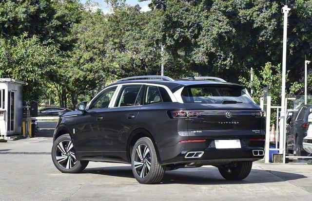 再来看车尾部分,车尾设计以简约大气为核心,横向贯穿式 LED 尾灯成为视觉焦点,灯组内部采用立体点阵式布局,点亮后呈现流水转向效果,与车头灯光系统形成呼应。尾门中央的大众 LOGO 下方嵌入 “TAYRON X” 标识,彰显车型身份,R-Line 版本则额外配备黑色尾翼与双边共四出排气装饰,强化运动属性。车尾下方的黑色保险杠搭配银色护板,兼顾防刮擦实用性与视觉厚重感,四驱版本还在底部增加专属标识。