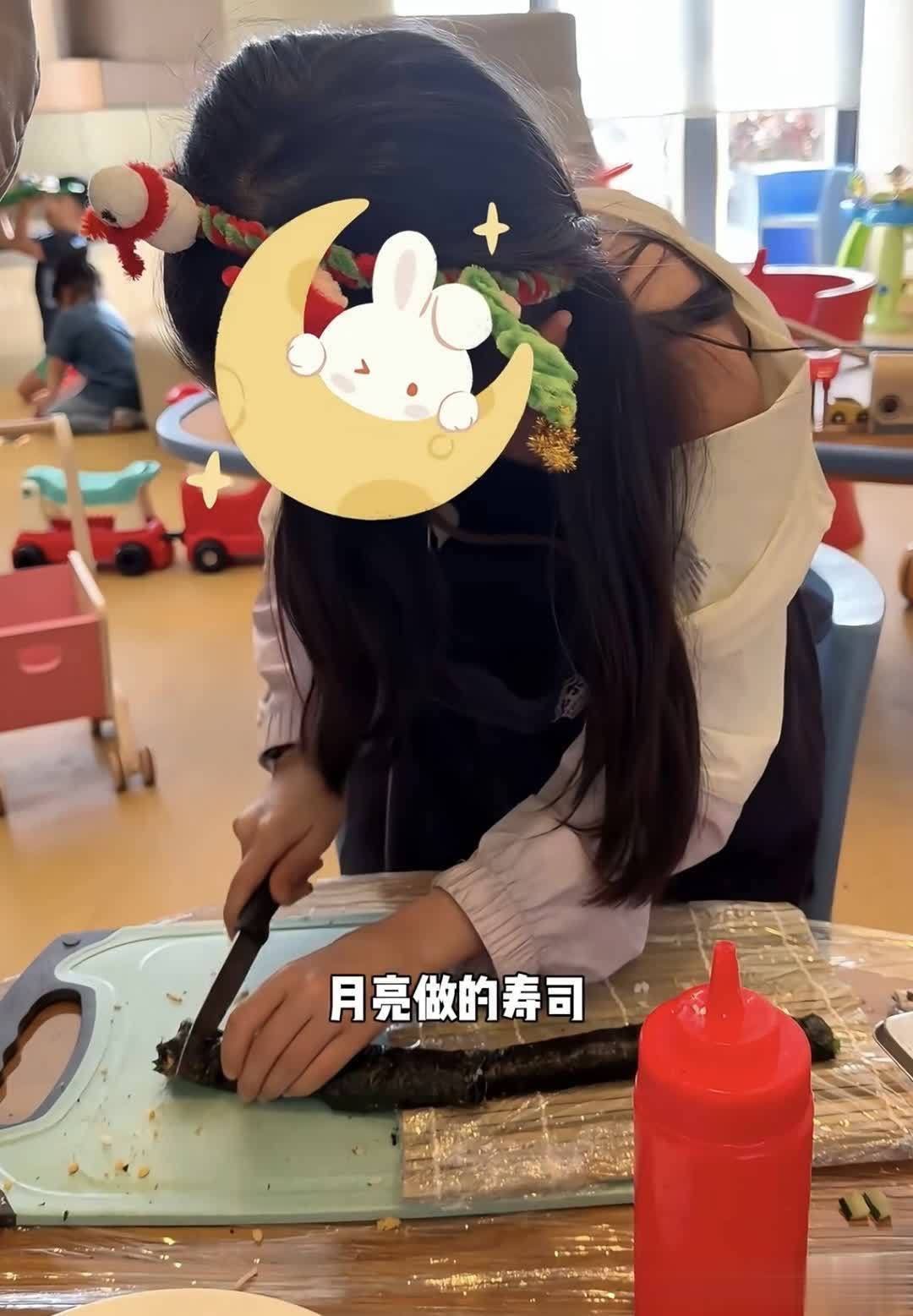 付辛博女儿和爸爸一样精力充沛,到了外面不停在动手实践,小月亮给妈妈做寿司,还送给颖儿亲手扭出来的发圈,孩子从小古灵精怪,性格特别活泼。